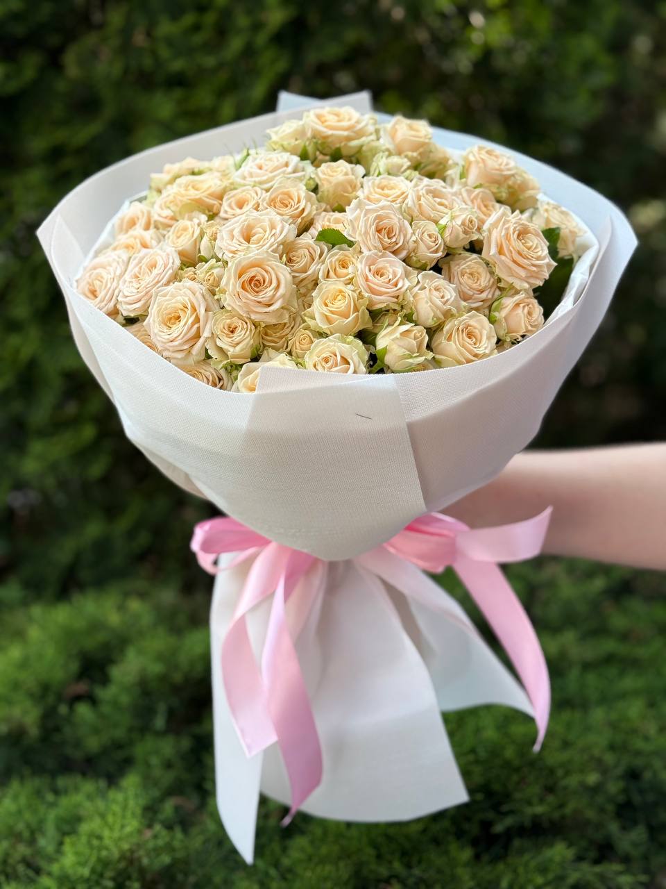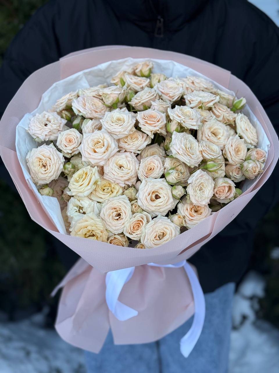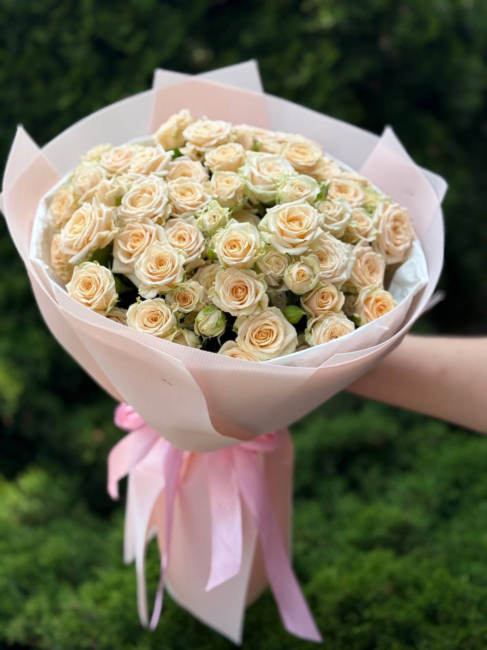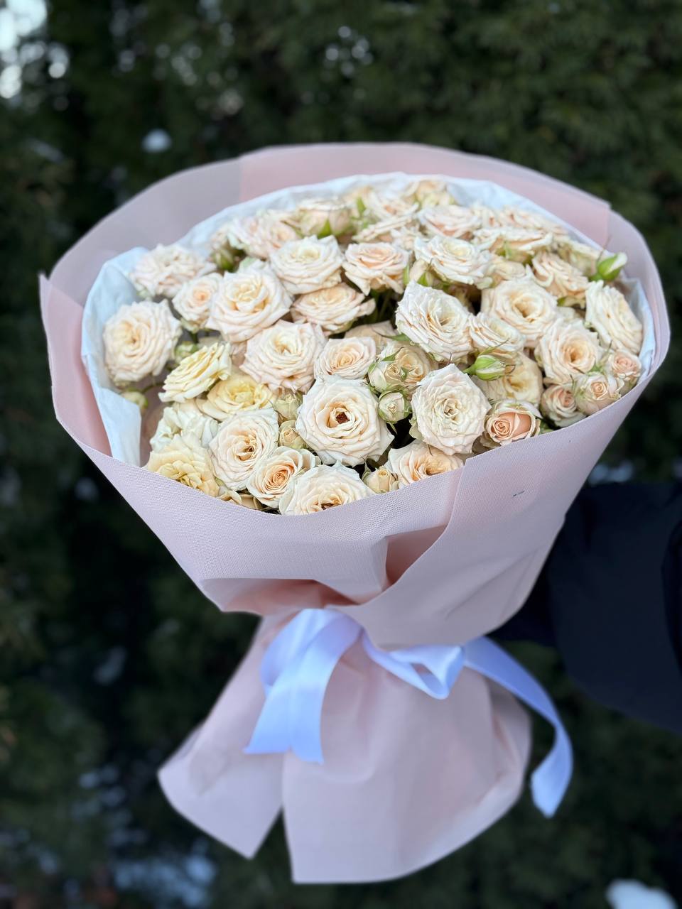 «Таня» — букет из 39 разветвлённых роз, обладающий женственным, нежным выражением. Пышные, элегантные бутоны и гармоничное сочетание цветов создают одновременно утончённую и выразительную композицию. Это отличный выбор для подарка любимому человеку, на день рождения или в знак благодарности. Каждый букет составлен с учётом свежести и пропорций; бережная упаковка и прочный переплёт гарантируют безопасную транспортировку и эффектный вид после распаковки.