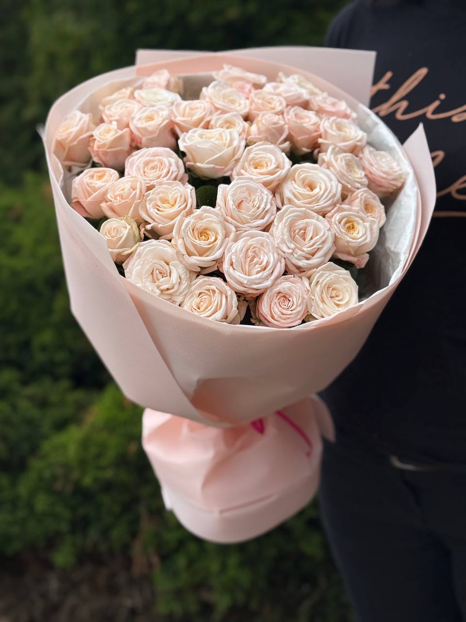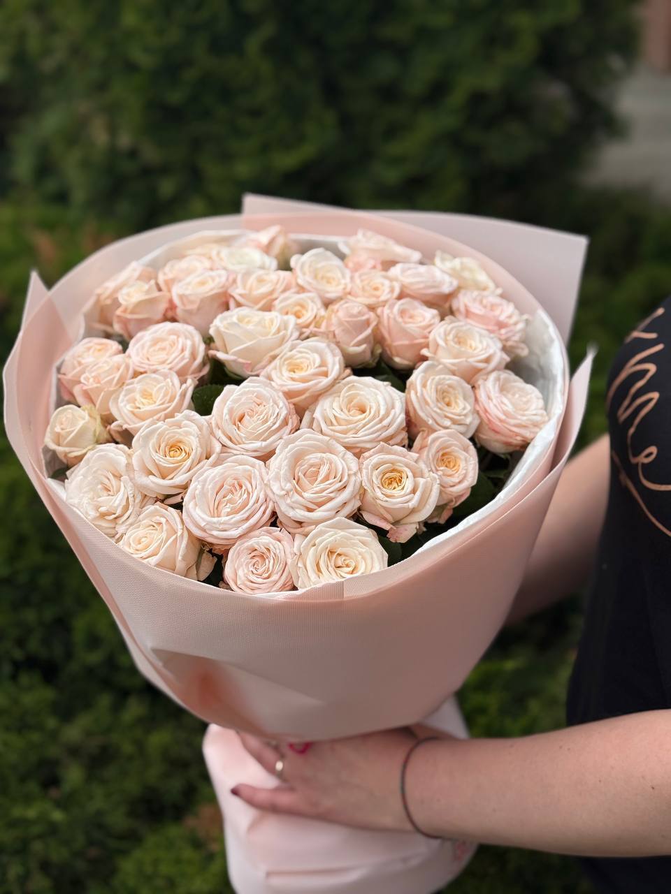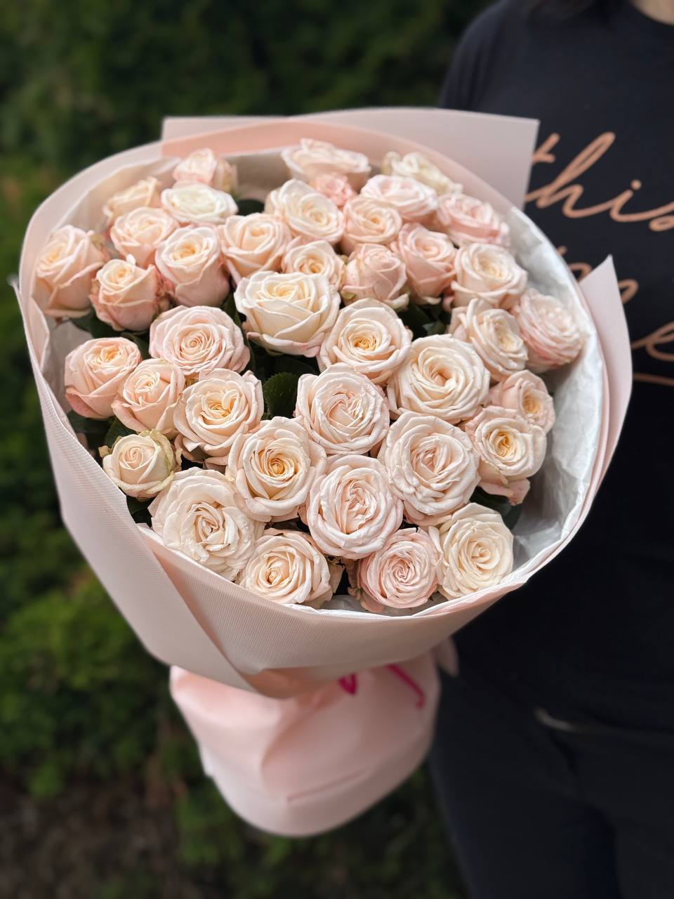 39 пионовидных роз сорта «Бомбастик» (с одним бутоном)